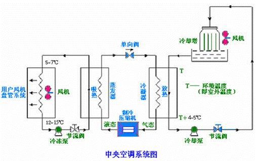 冷卻塔在配水冷冷水機使用時,它的功能同樣是制冷。工作原理是:把攜帶熱量的冷卻水在塔中和空氣進行熱交換,把熱量傳輸給空氣并散入大氣環(huán)境中去,以此達到給水冷冷水機提供冷卻水的目的。在冷卻水系統(tǒng)中主要起到