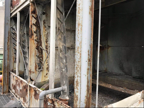根據(jù)上圖的結(jié)構(gòu)我們還知道,閉式冷卻塔盤(pán)管的四周是被鍍鋁鋅板外殼所包圍著的,所以我們?cè)诓鹆耸账骱?,還需要將外殼也拆除了。